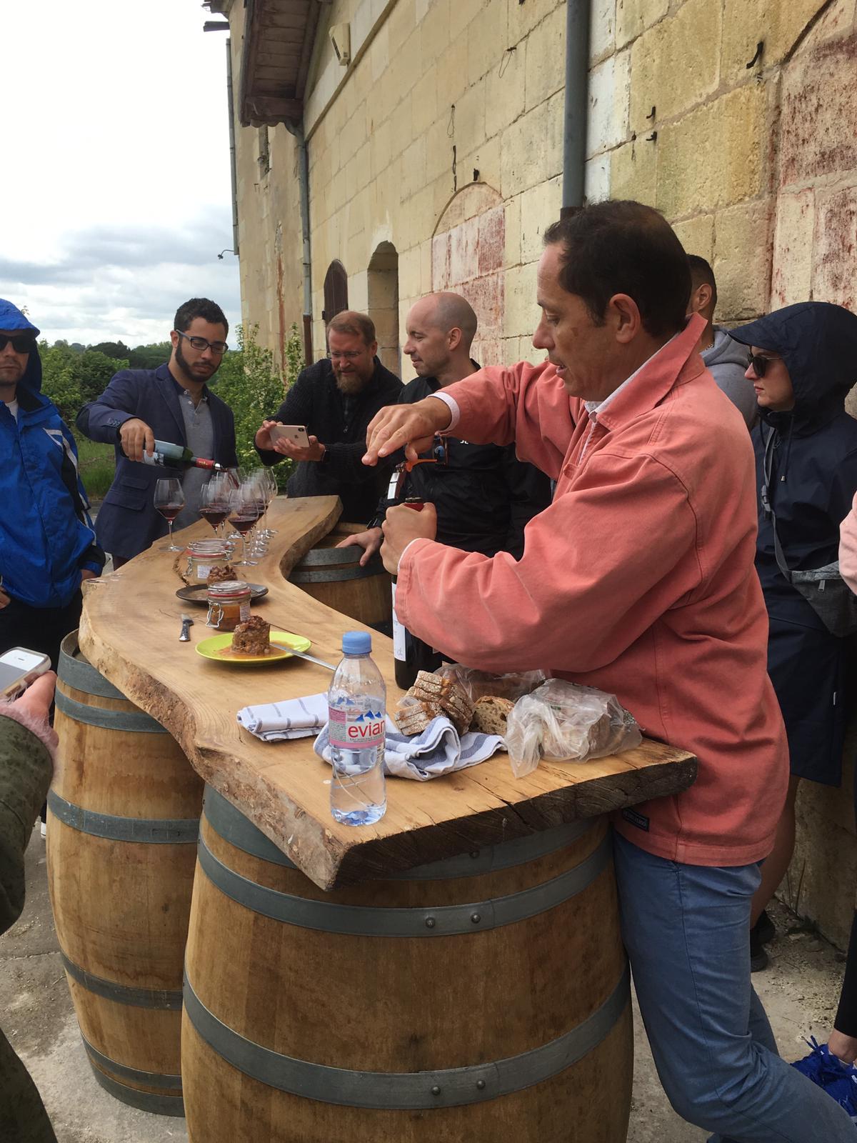 The Famille Saby wine business is now run by father Jean-Bernard and his two sons, Jean-Philippe and Jean-Christophe, and day two began with a walking tour of their Saint-André Corbin vineyard and winery, and a gourmet tasting of the produce, including delicious pate and the area’s famous red wines.
